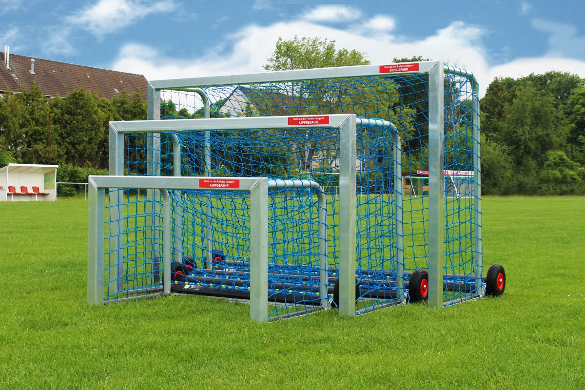 Navzdory své nízké hmotnosti je plně svařovaná, jednodílná branka mimořádně stabilní a odolná – výrazně robustnější než skládací nebo šroubované alternativy. Vysoce kvalitní zpracování, bezpečné ukotvení proti převrácení a certifikace DIN-EN 16579 zajišťují naprosto příjemný a bezpečný herní zážitek.